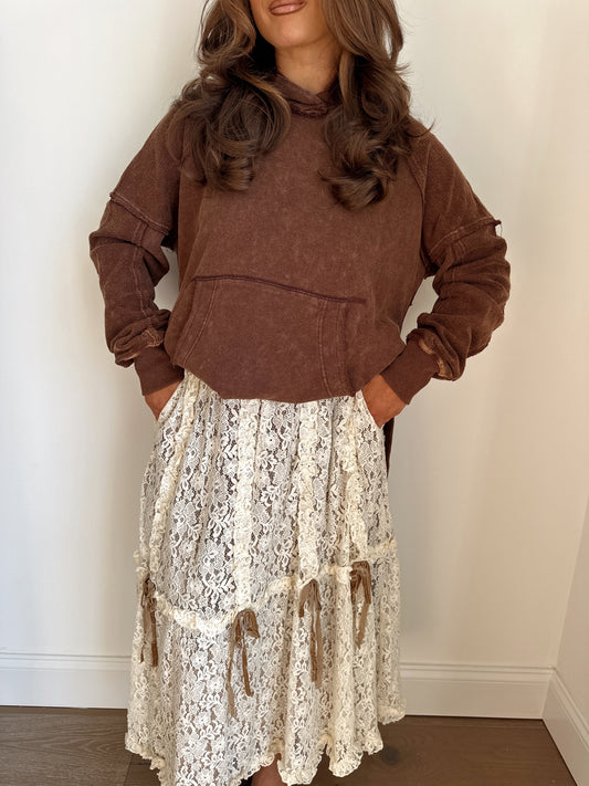 Sold outLace & Bows Holiday MIDI Skirt 🤎🤍