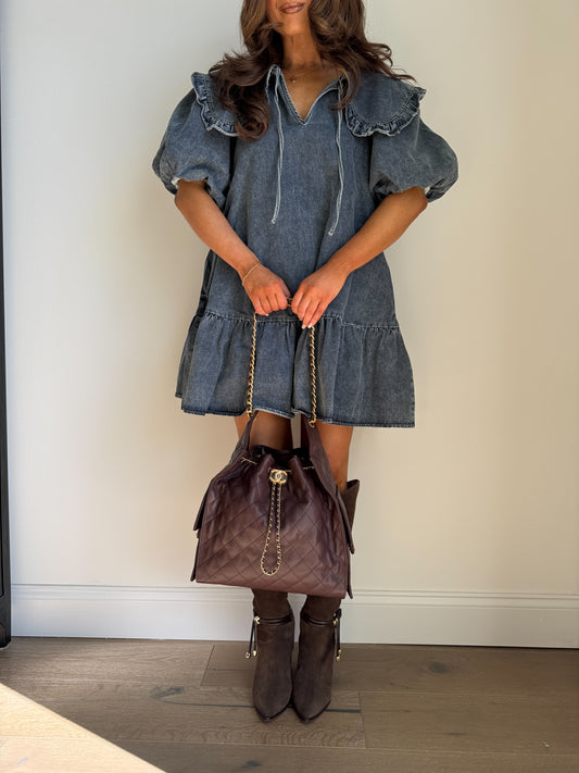 Cecile Denim Puff Sleeve Dress (can’t restock)