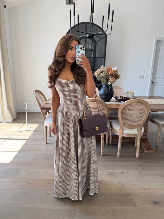 Sold outCaramel Crème Gingham Maxi in Cocoa