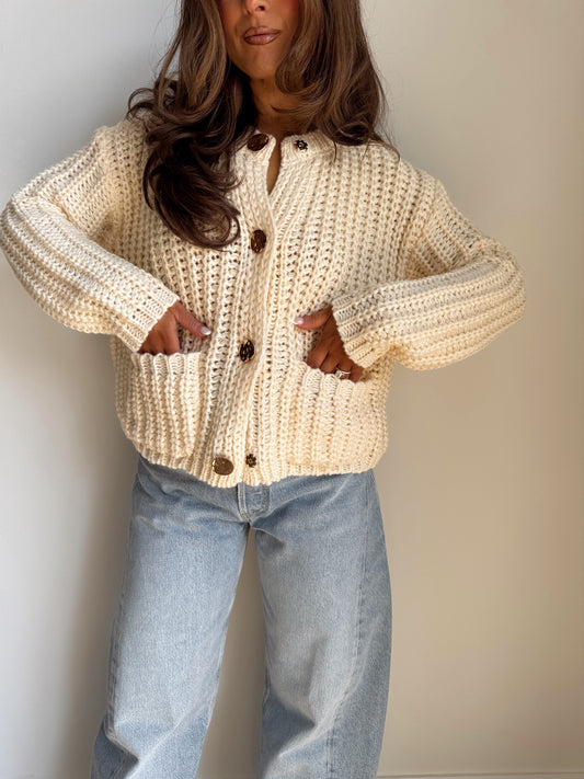 Cozy Autumn Chunky Knit Cardigan (Cream)