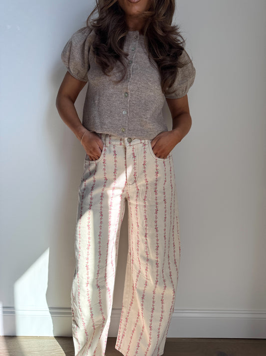 Darling Oversized floral pattern printed knit pants