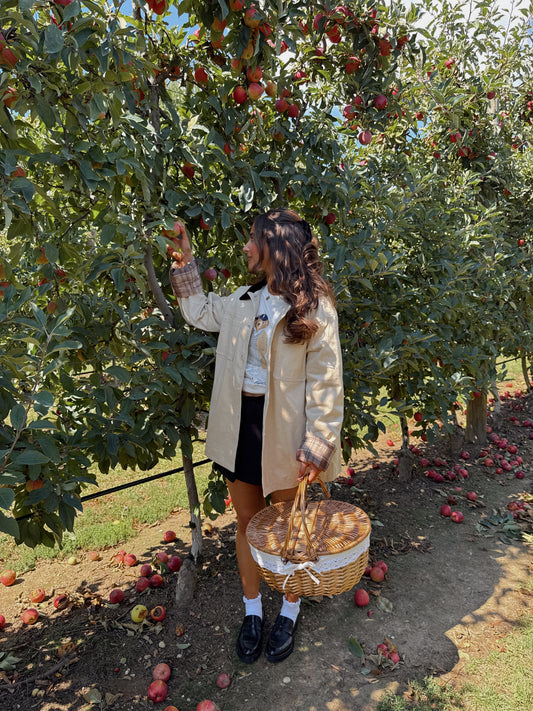 There’s nothing quite like autumn in New York. The air turns crisp, the trees are brushed in golden hues, and every weekend feels like a chance to step into a postcard. This collection is inspired by all the things I grew up loving most about fall, apple picking in the orchards, pumpkin patches on cool afternoons, wandering through farmer’s markets with a warm cider in hand, and cozying up in layers that feel as timeless as the season itself.