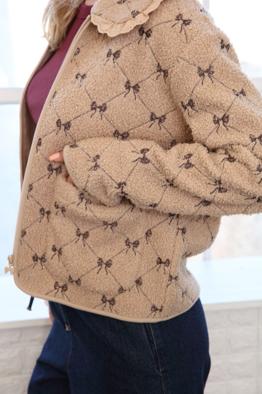 Hot Chocolate In Bryant Park Sherpa Bow Embroidered Jacket