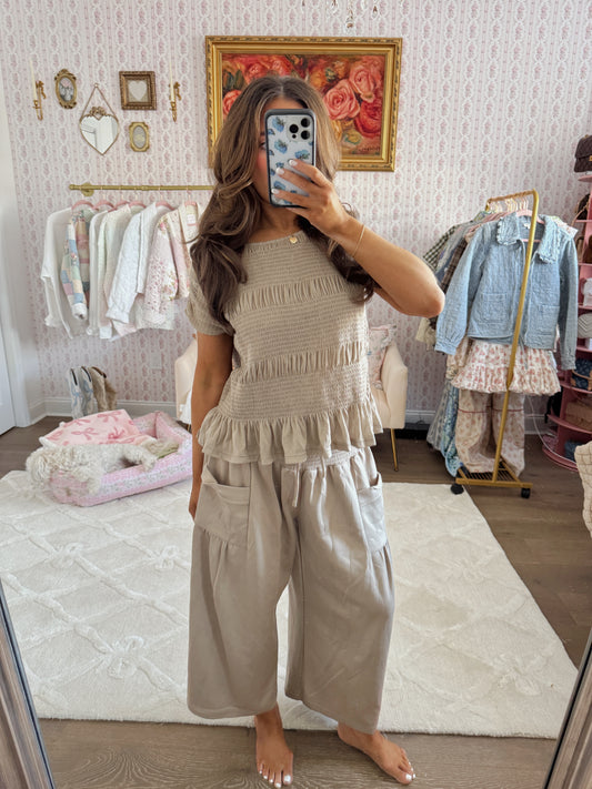 Denim Puff Sleeve Barrel Jumpsuit