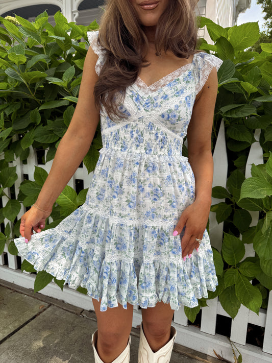 The Darling Vintage Mini Dress (Blueberry Blossom)