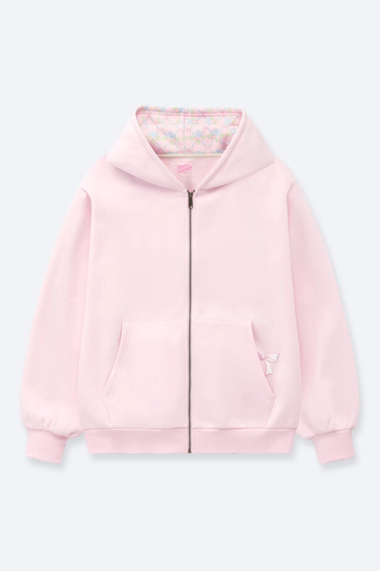 Ribboned Hydrangeas Zip Up Hoodie Blush Pink