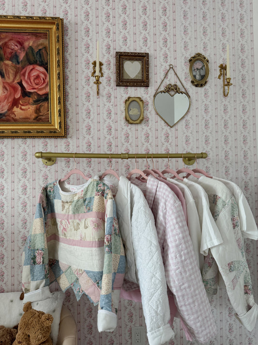 This one-of-a-kind collection is lovingly crafted from antique fabrics, vintage florals, and heirloom quilts, each piece a delicate blend of past and present. These garments aren’t just clothes, they’re stories stitched into softness and handmade with care, heart, and a touch of nostalgia. No two are the same. Every dress, blouse, or jacket is a timeless treasure, reborn from forgotten florals and faded patchwork.
