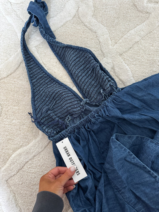 Denim UO halter mini dress nwt (small)