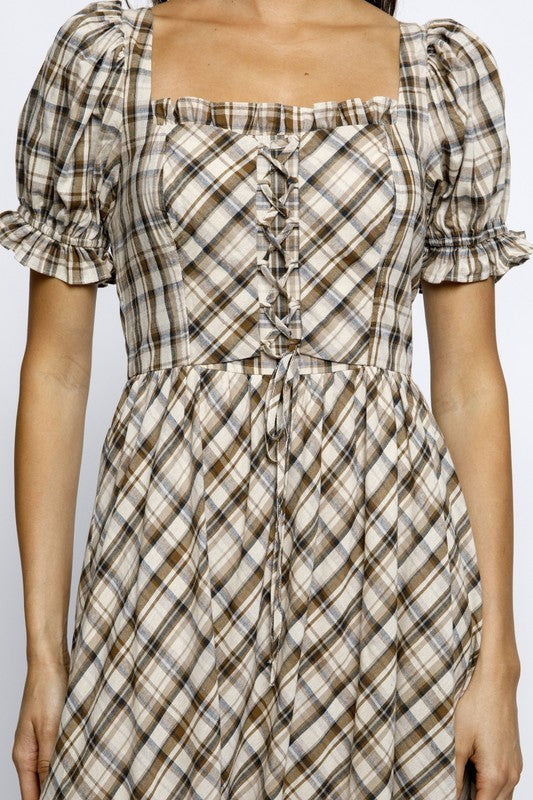 Once Upon a Dream Puff Sleeve Plaid Dress
