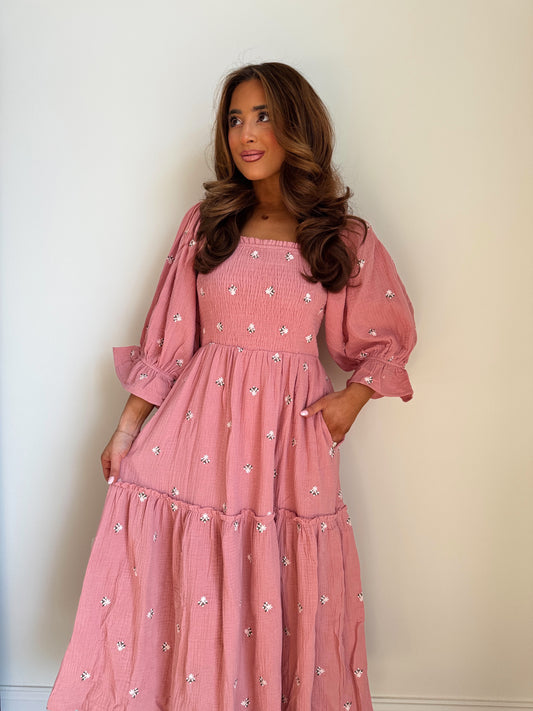 Sold outRoses Puff Sleeve Midi in Rosé