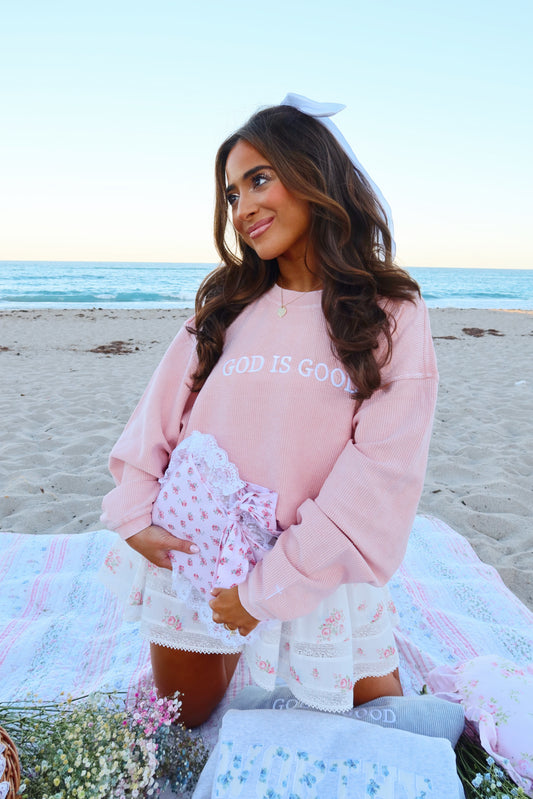 God is Good Corded Crew & Cross (Light Blush Pink)