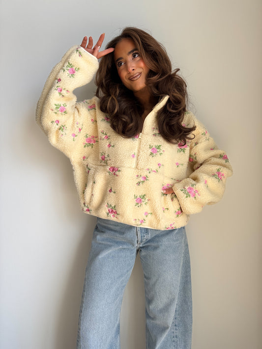 Sold outLemon Roses Sherpa Half Zip