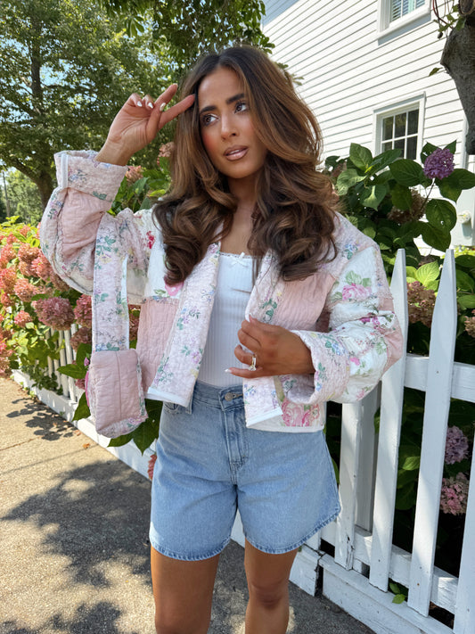 Cotton Candy Dreams Floral Vintage Shabby Chic Bespoke Quilted Jacket PREORDER