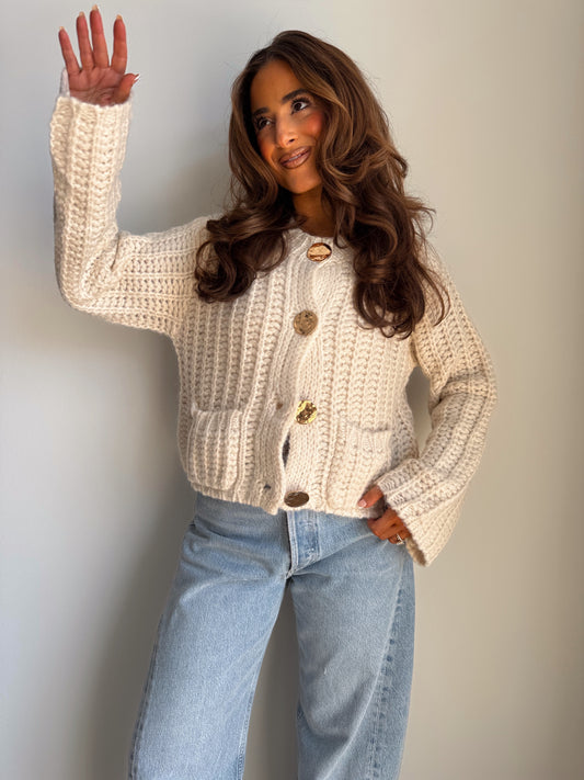 Cozy Autumn Chunky Knit Cardigan (Cream)