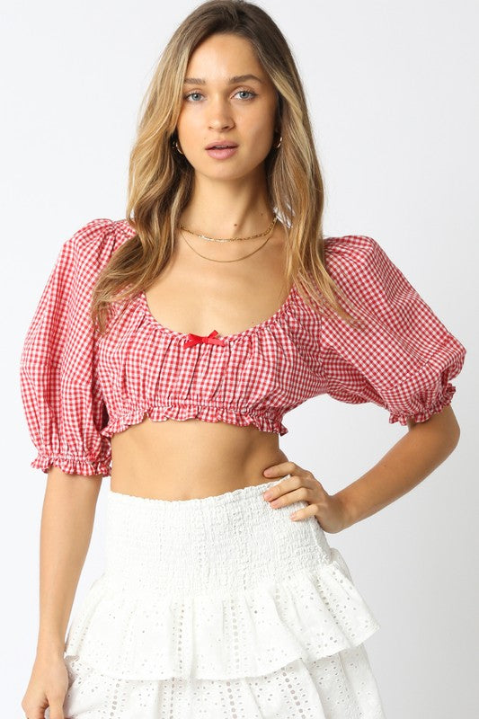 The Minnie Red Gingham Puff Sleeve Linen Top