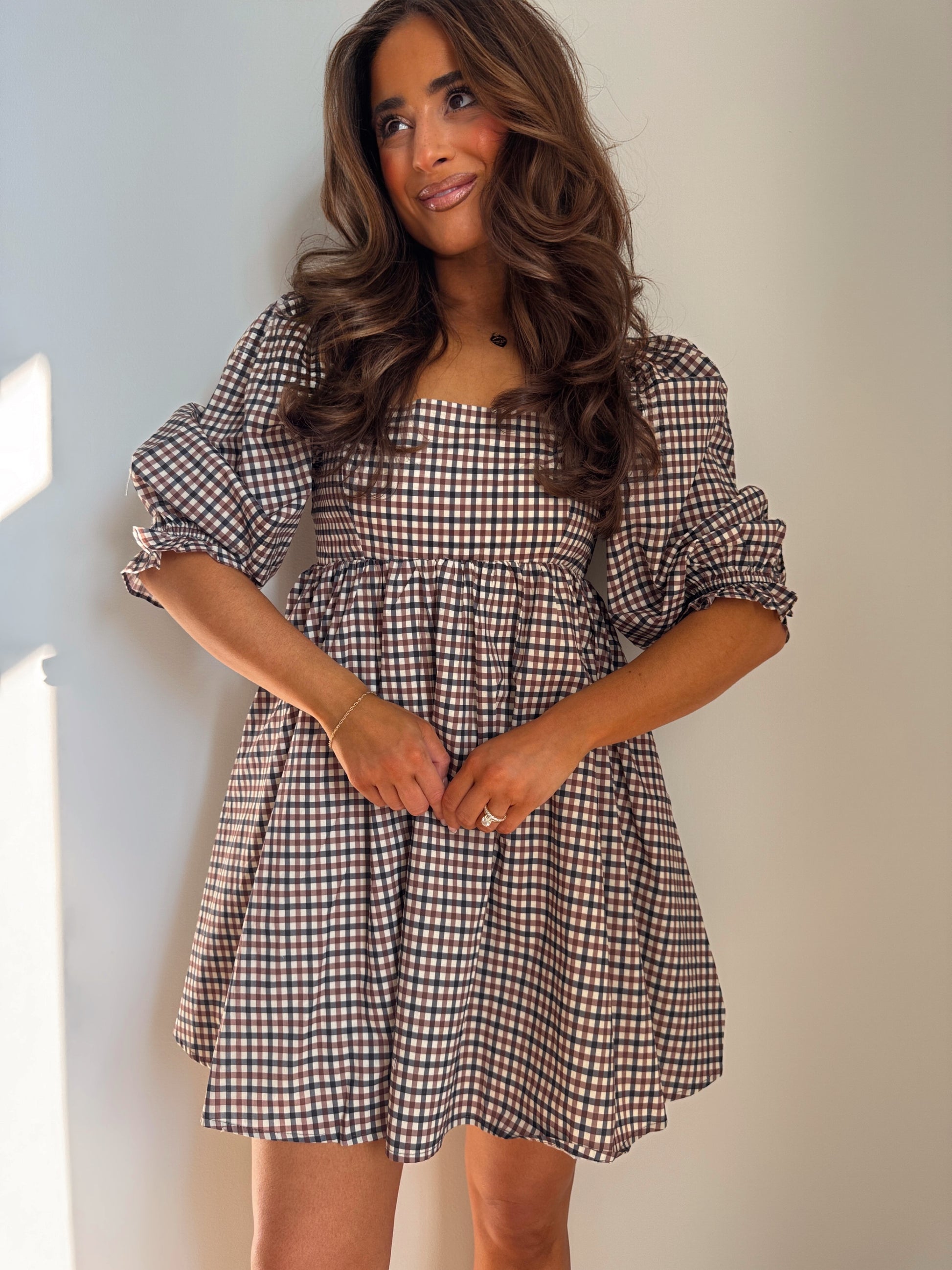 Brown Sugar Gingham Puff Sleeve Dress (pre order added for September 30)