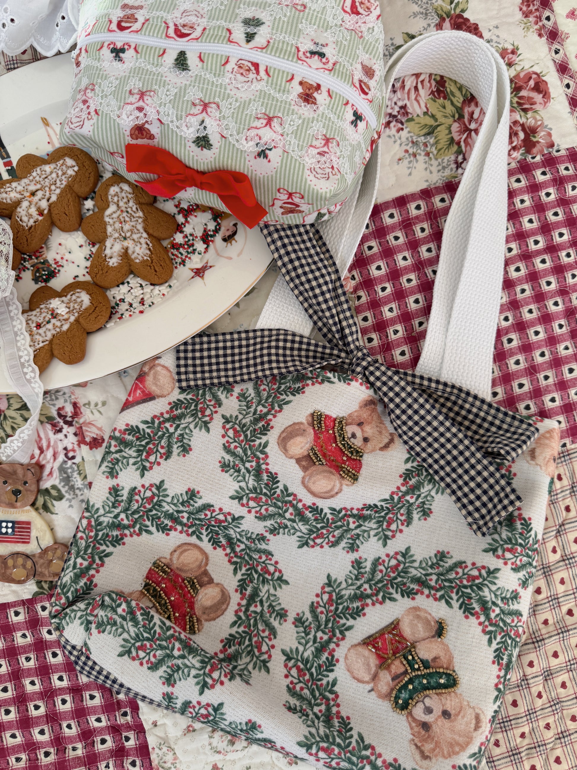 Gingerbread Bear Lane Beaded Tote Bag