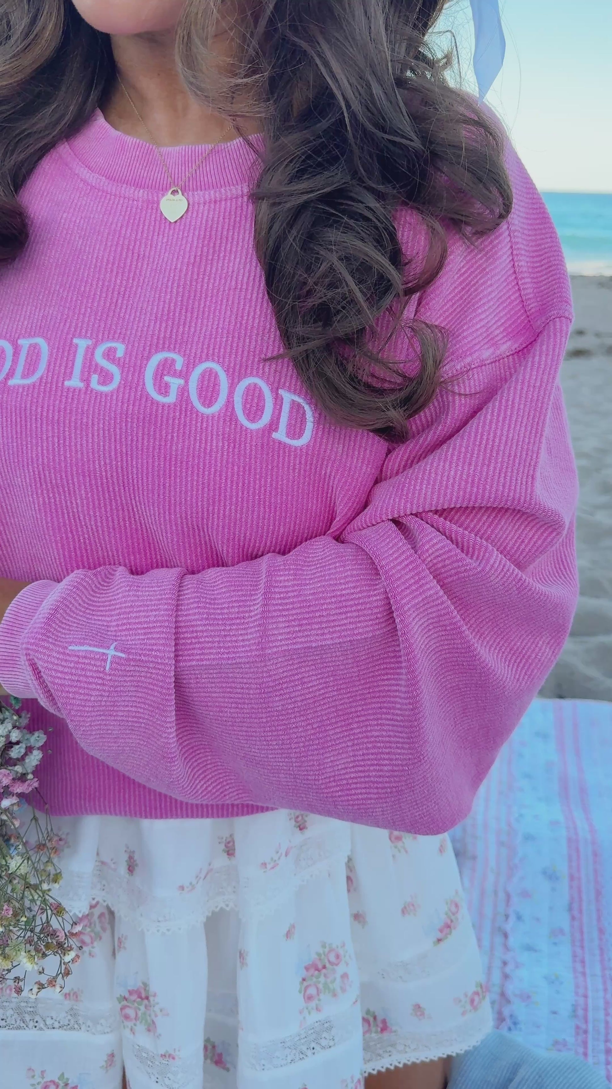 God is Good Corded Crew & Cross (Barbie Pink)-Custom Made PREORDER