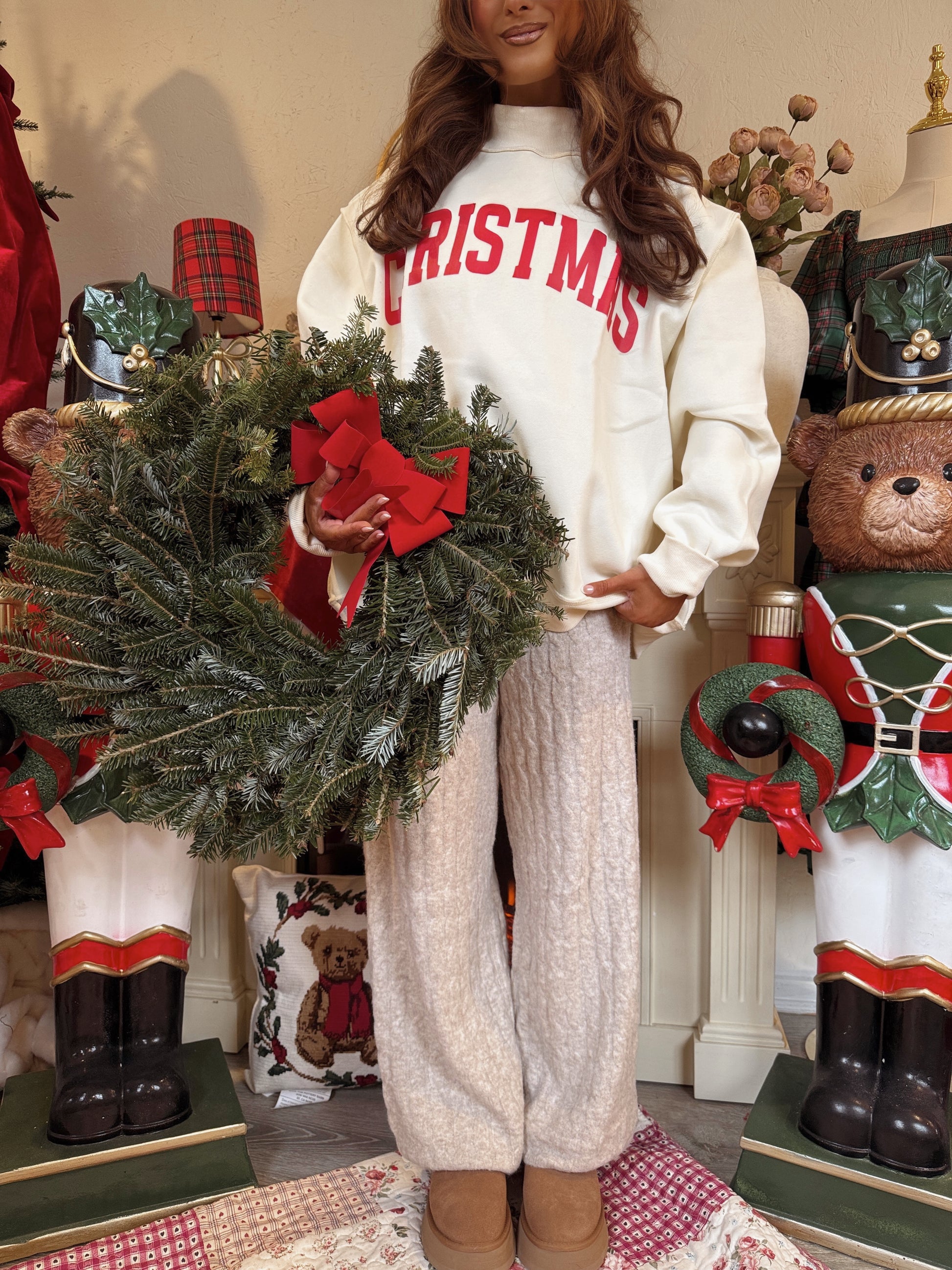 'CHRISTMAS & MERRY' Print Reversible Mockneck Sweatshirt