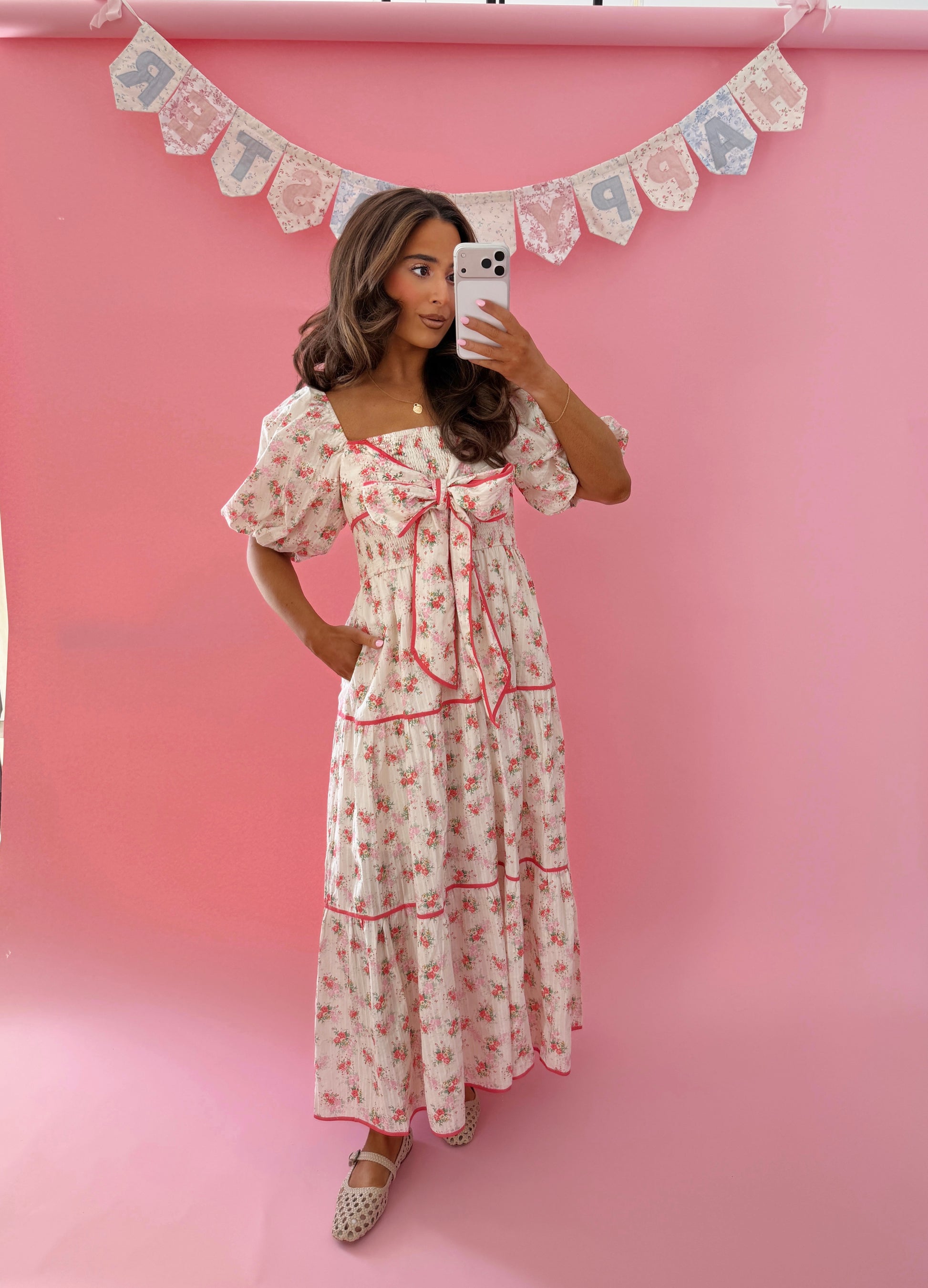 Bunny Bow Midi Dress Vintage Floral