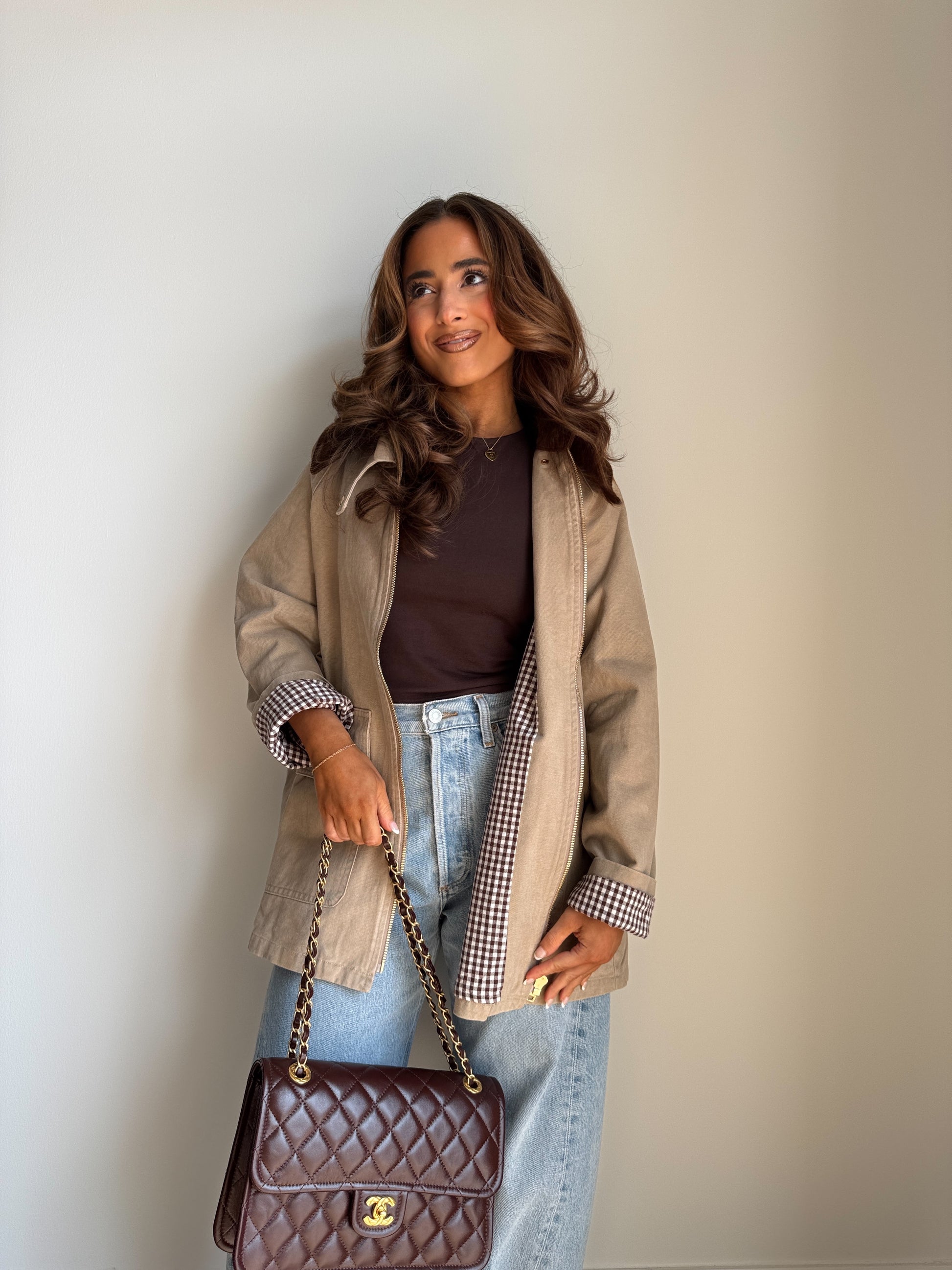 Maplewood Barn Jacket Gingham (Sandy Beige) PRE ORDER OCTOBER