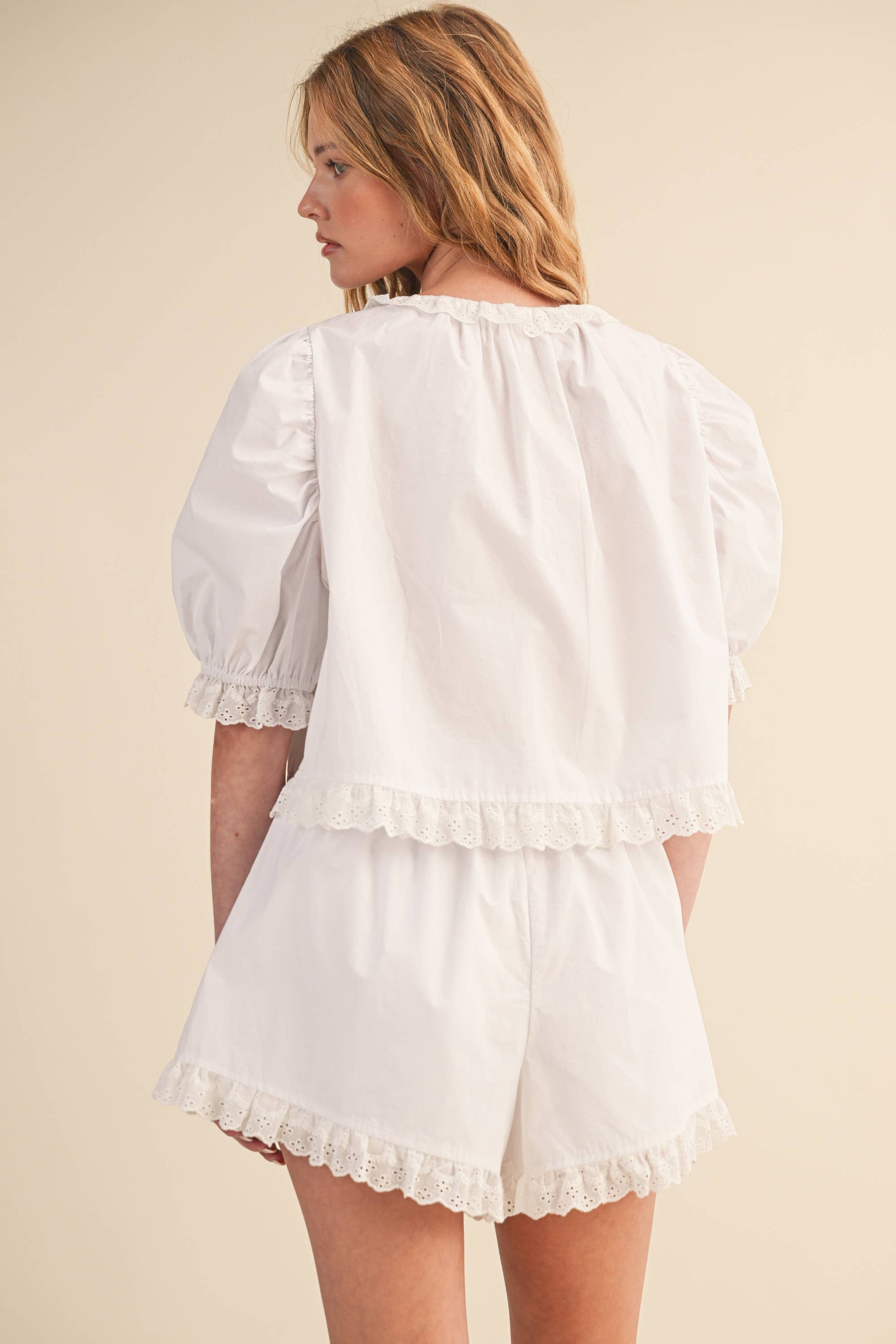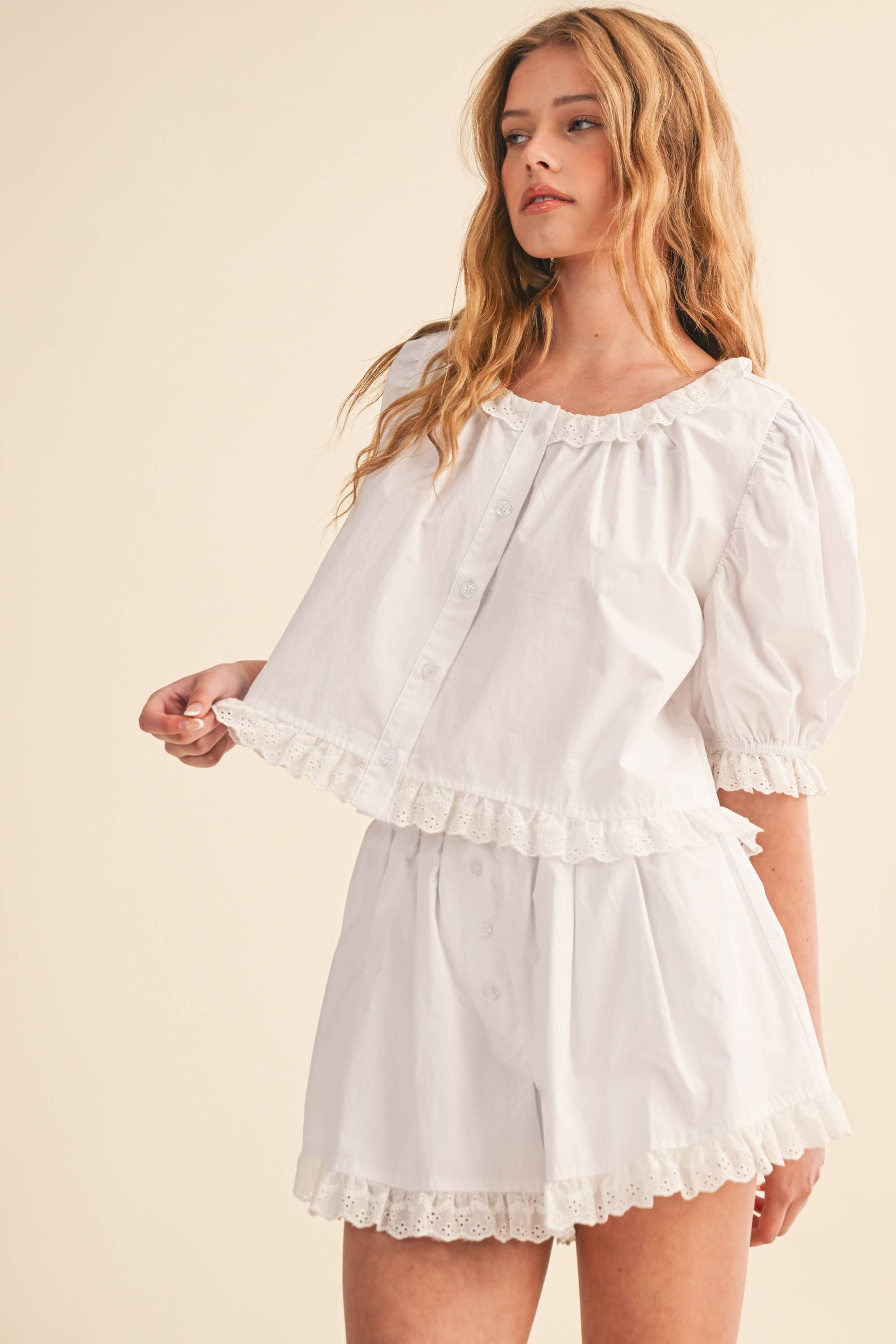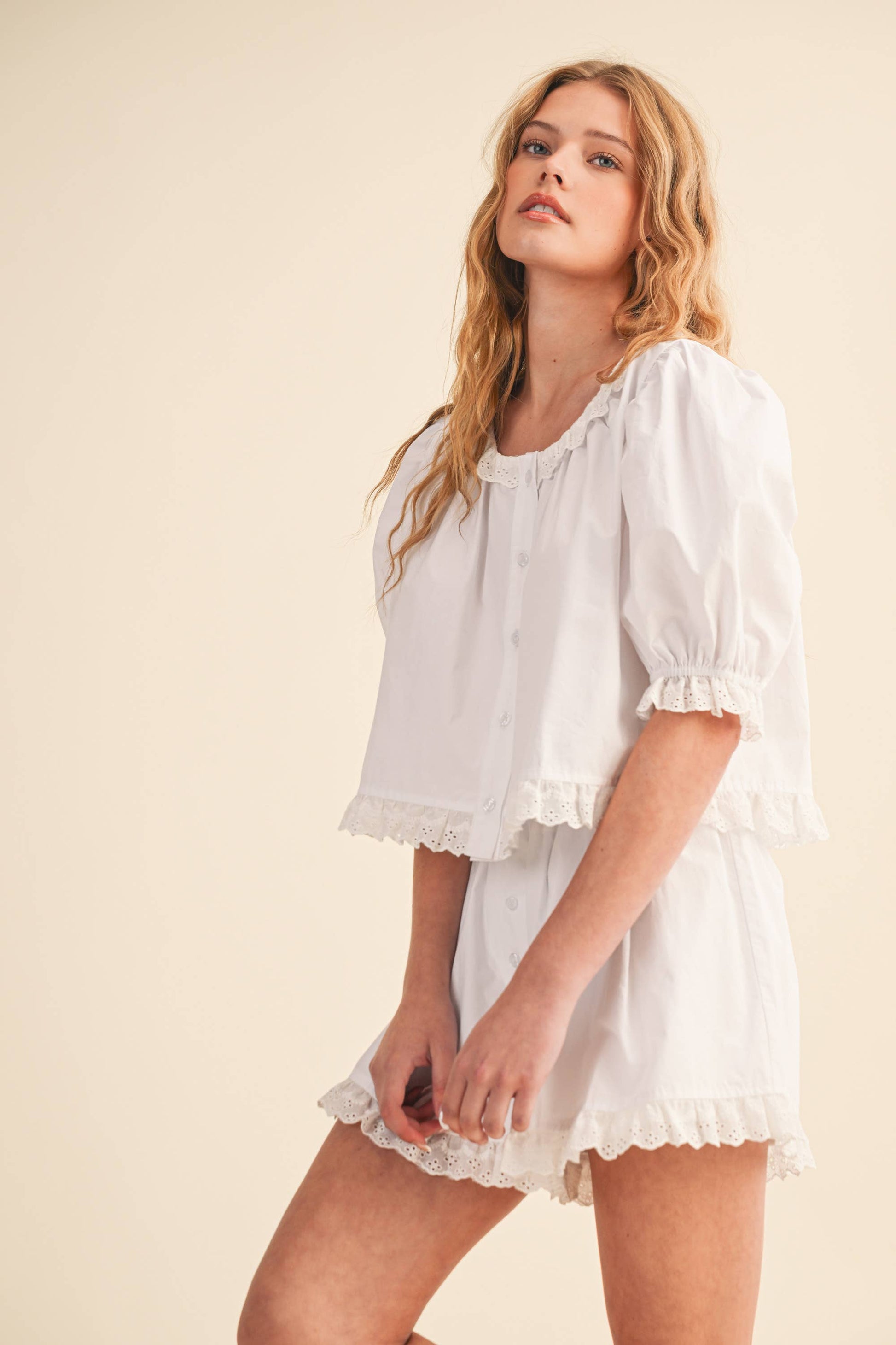 POPLIN SHORT SLEEVE SHIRT AND SHORT WITH LACE TRIM 100%C /L:100%C