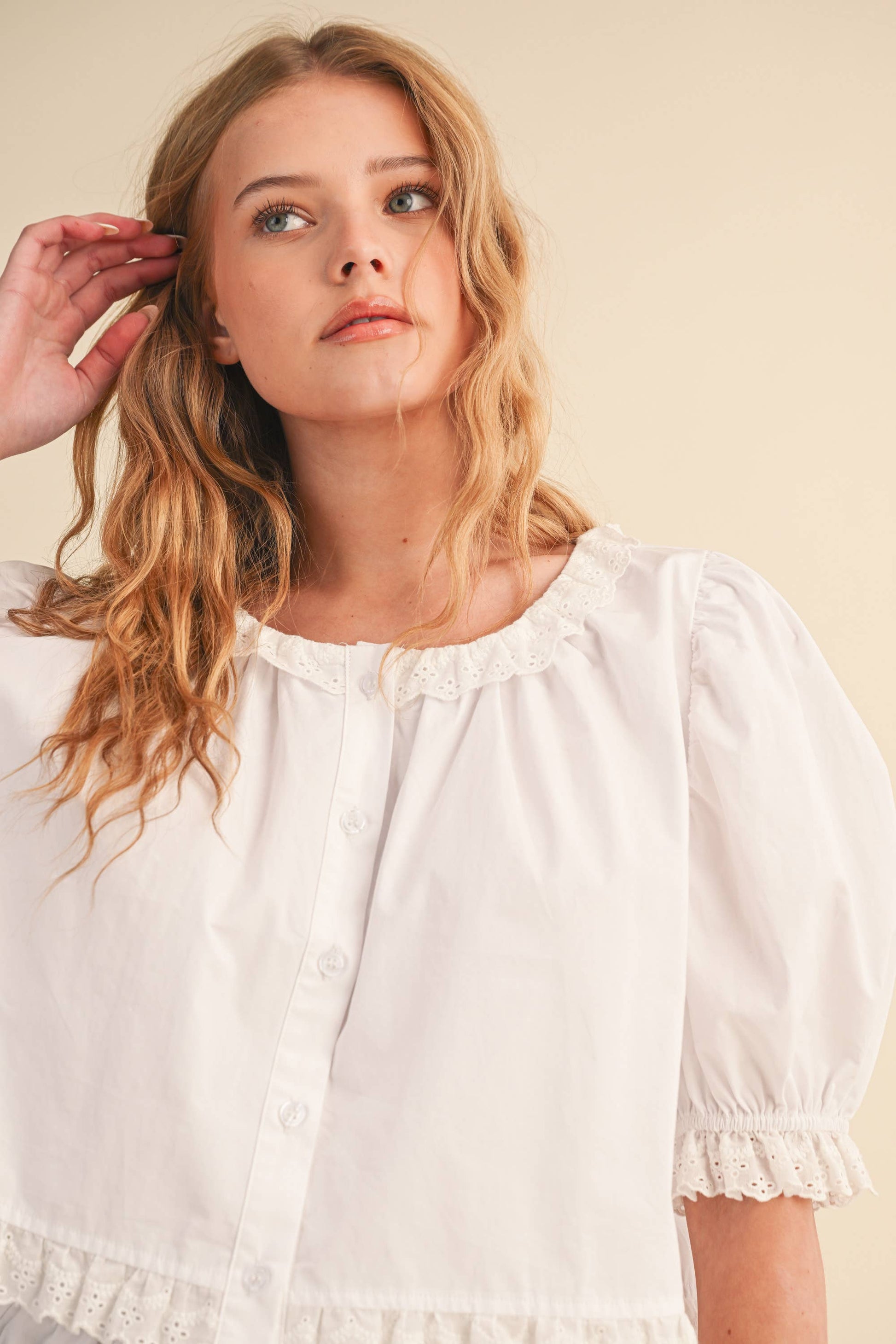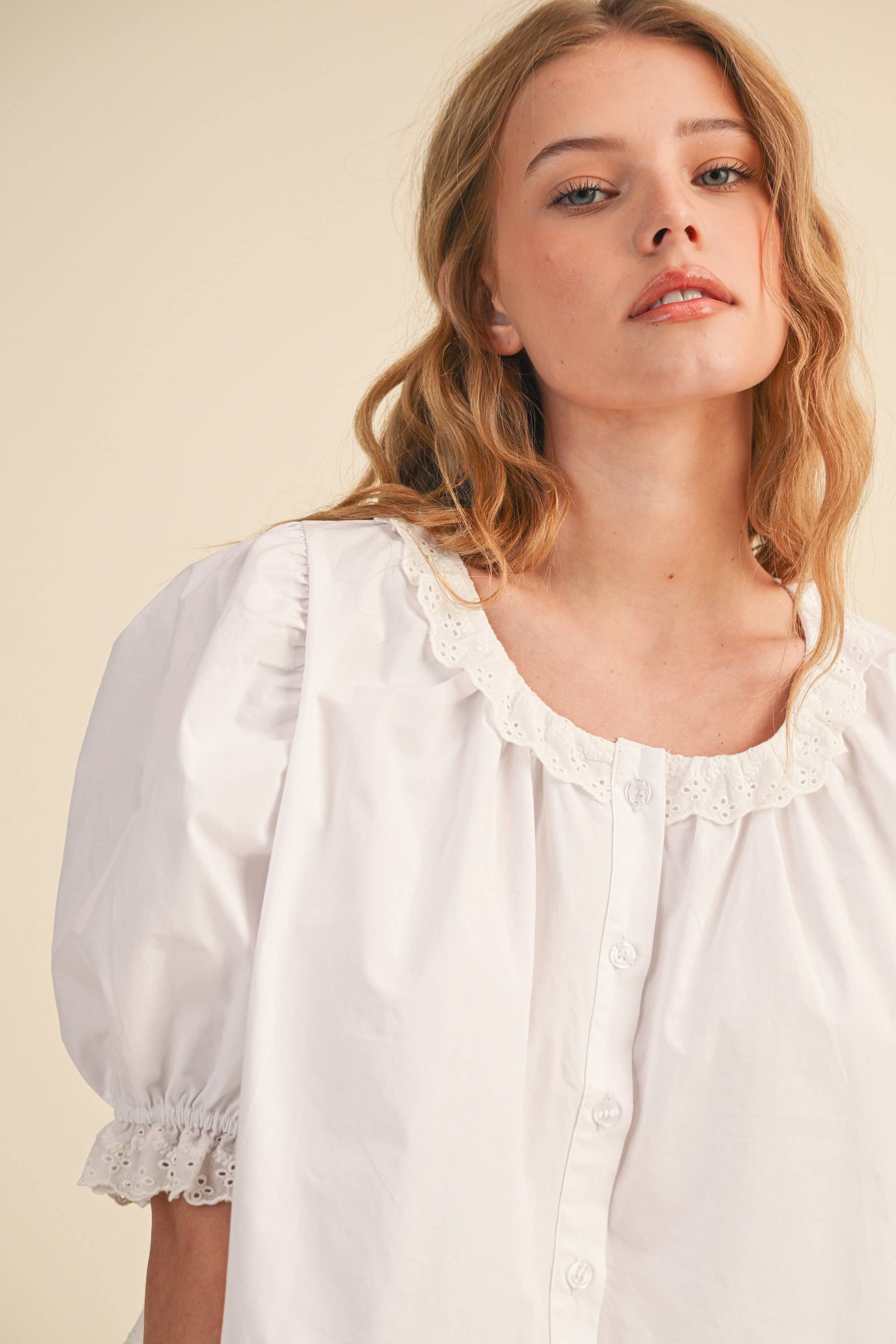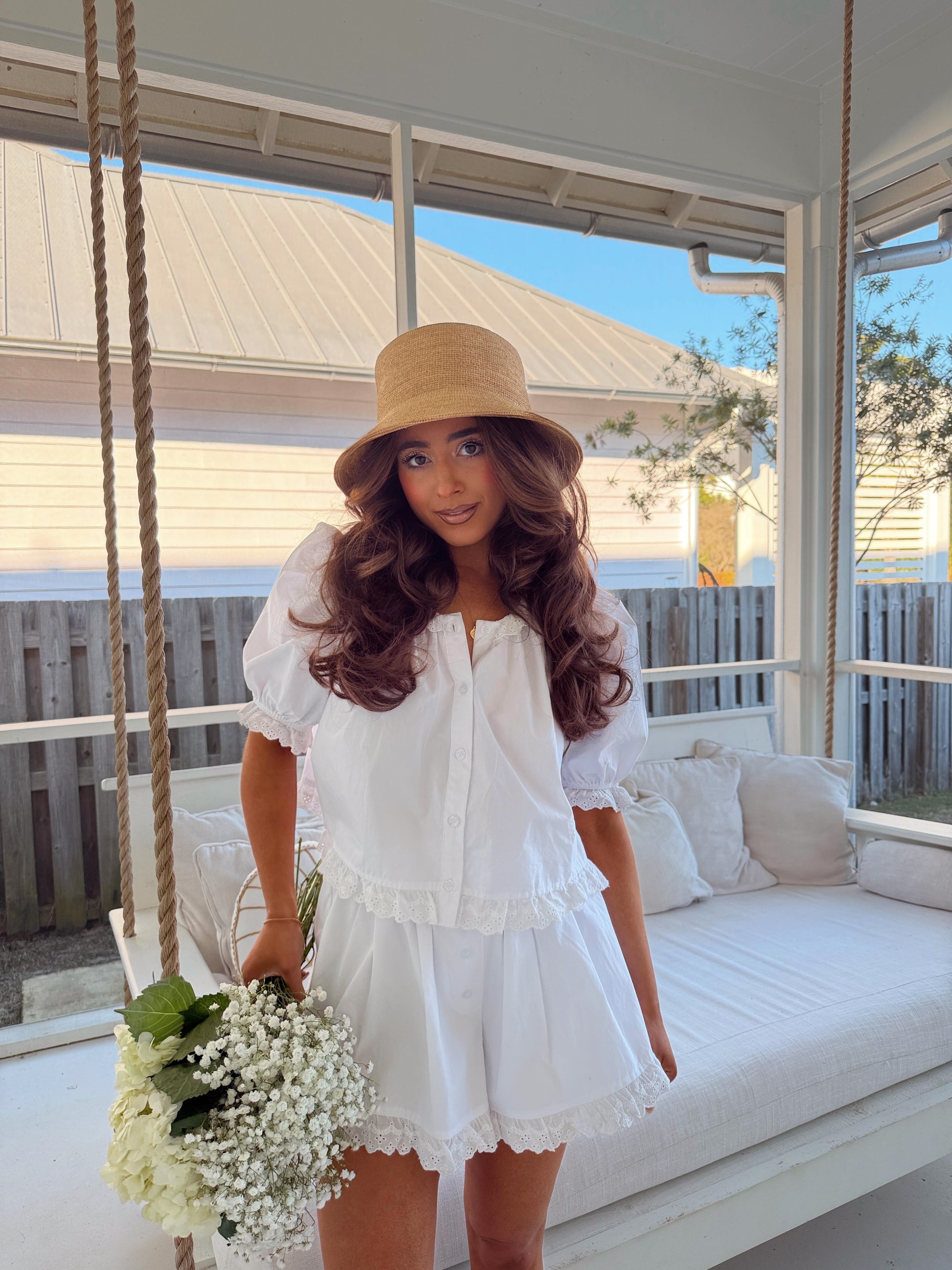 POPLIN SHORT SLEEVE SHIRT AND SHORT WITH LACE TRIM 100%C /L:100%C